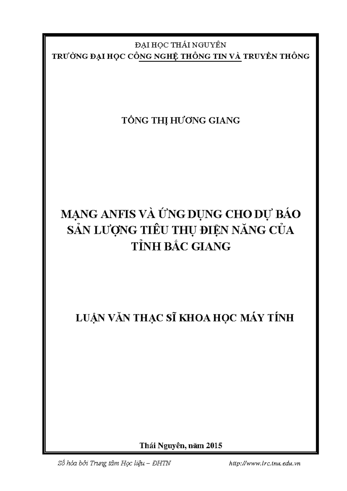 Luận Văn Thạc Sĩ: Mạng ANFIS và Dự Báo Tiêu Thụ Điện Năng Tỉnh Bắc ...