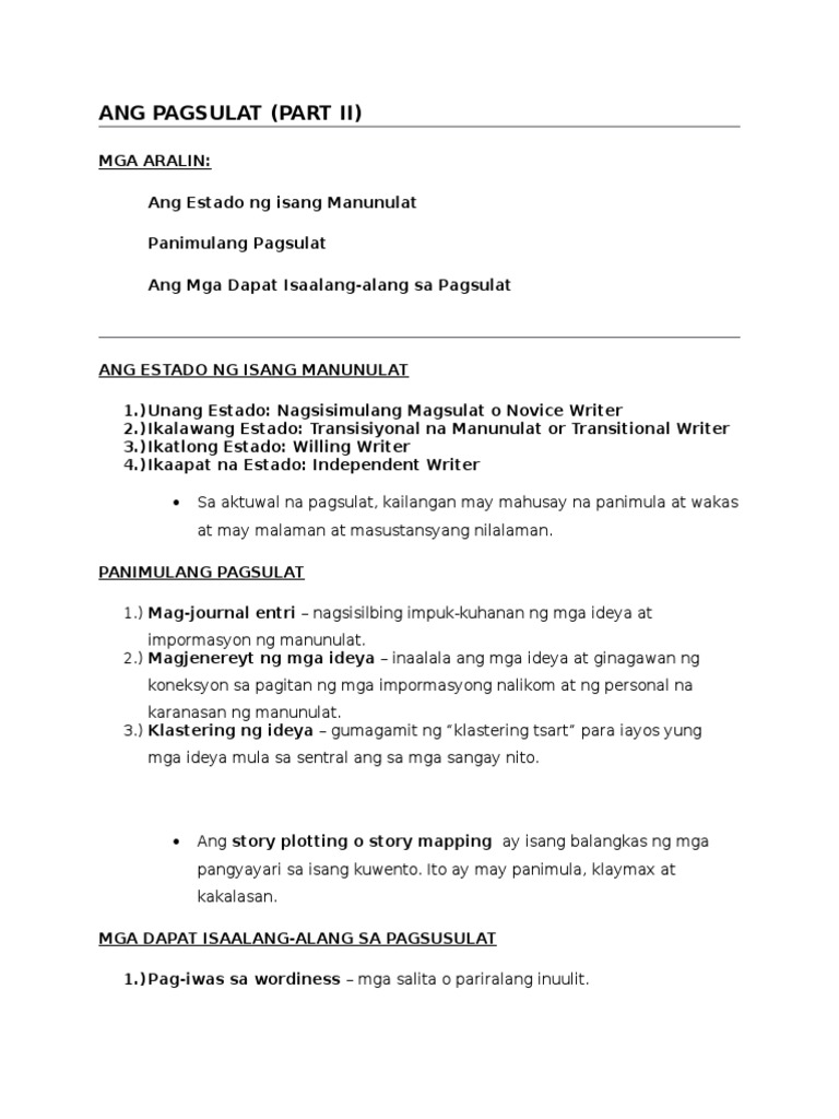 II. Ang Filipino Sa Pagsulat | PDF