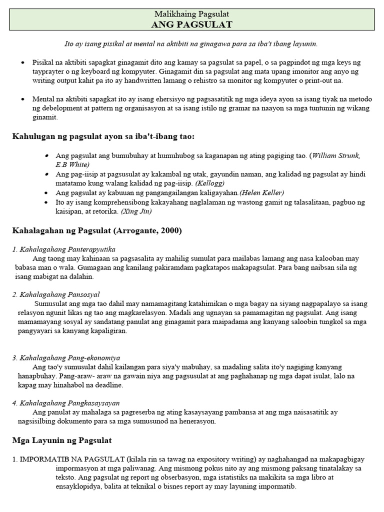Kahulugan, Kahalagahan at Layunin ng Pagsulat - Kahulugan ng Pagsulat ...