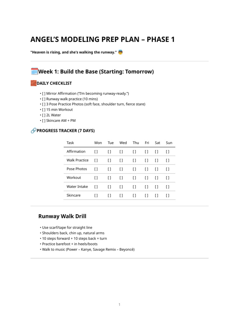 Angel Modeling Prep Plan | PDF
