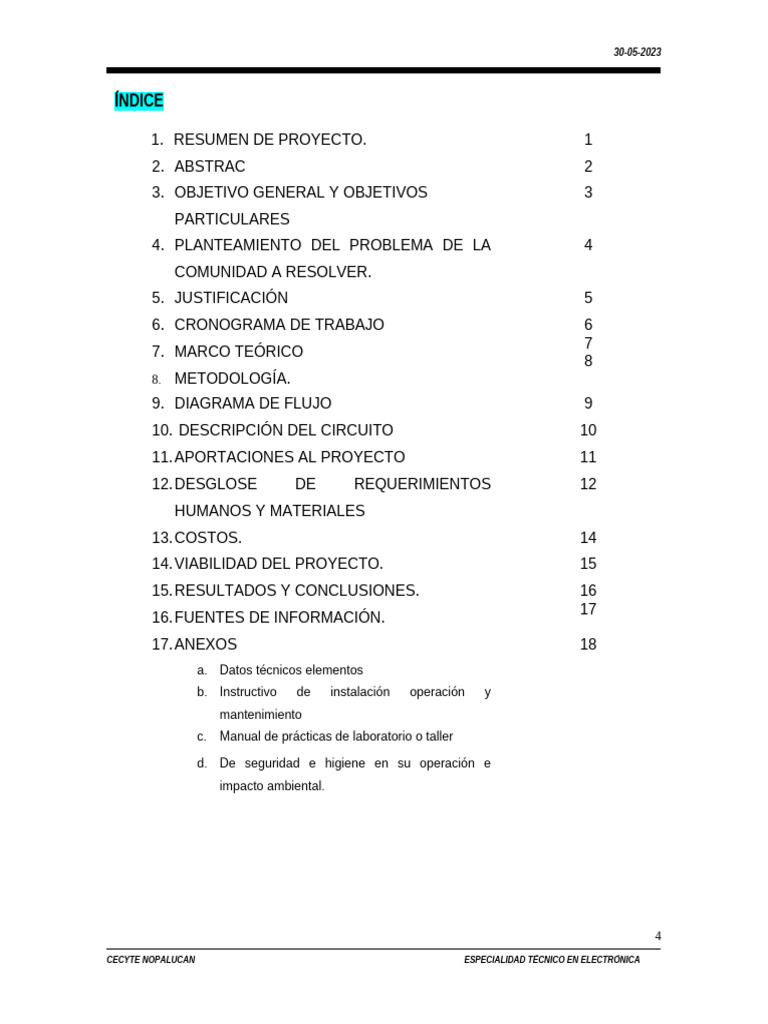 Indice del Proyecto | PDF