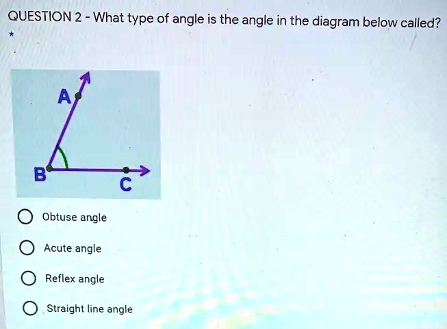 SOLVED: QUESTION 2 - What type of angle is the angle in the diagram ...