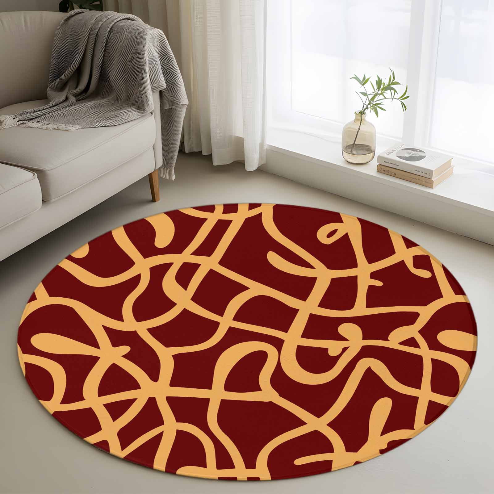 Abstract Line Small Round Rug 3Ft Retro Pattern Orange Wave Line Art ...