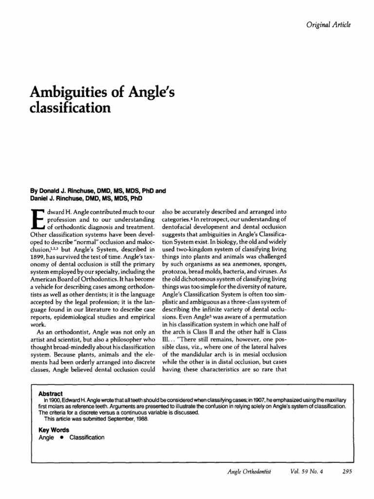 Ambiguities of Angle S Classification | PDF