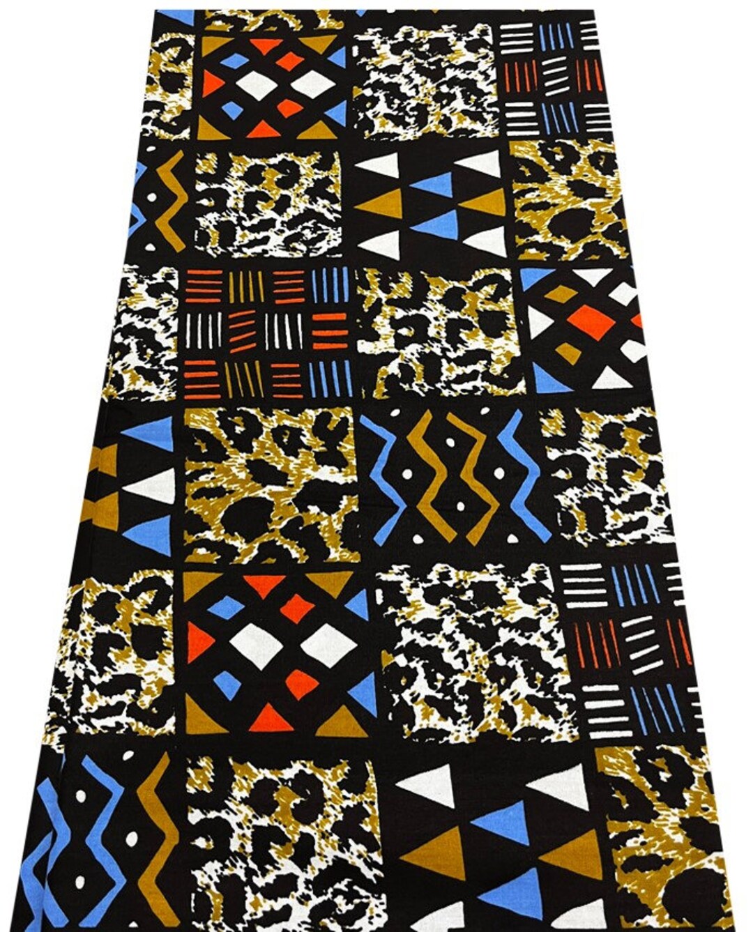 Samakaka Angola African Fabric Patchwork- Black White Brown Orange Blue ...