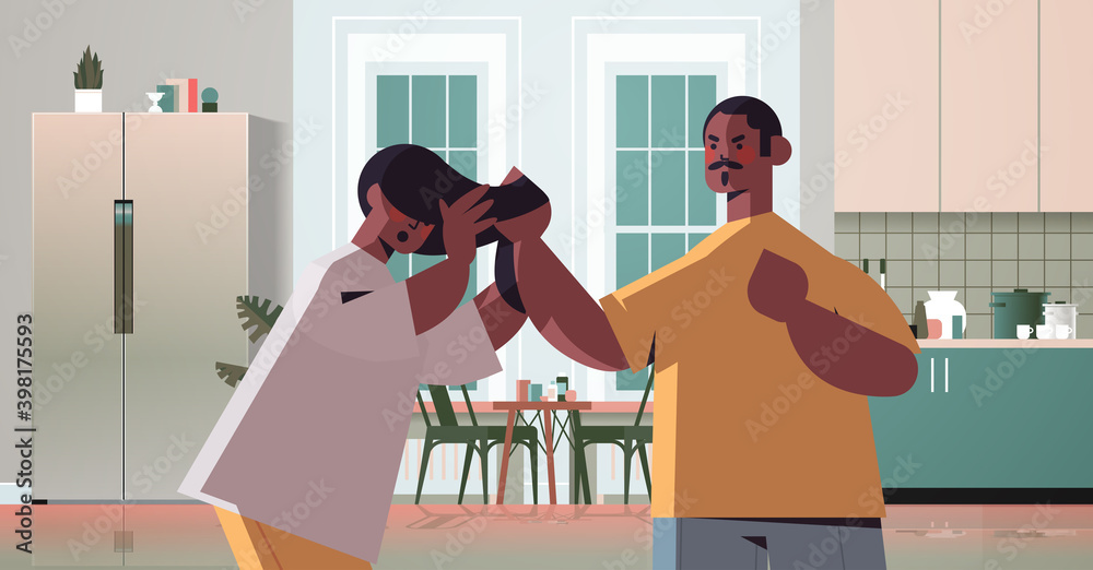 angry man punching and hitting african american woman stop domestic ...