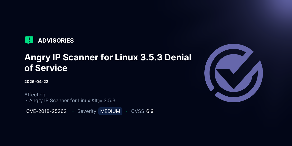 Angry IP Scanner for Linux 3.5.3 Denial of Service | Advisories | VulnCheck