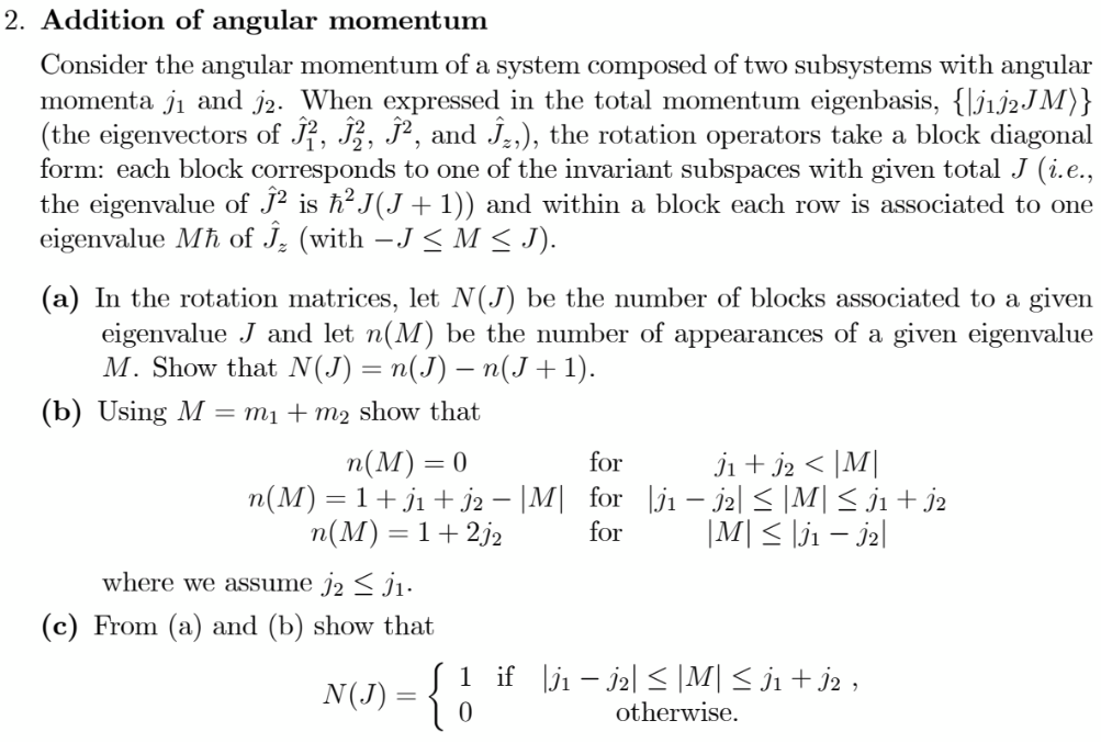 Solved Quantum mechanics Addition of angular momenta | Chegg.com