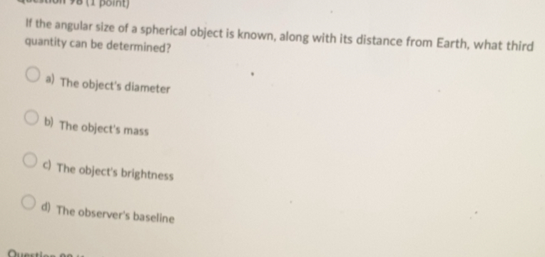 Solved: 98 (1 point) If the angular size of a spherical object is known ...