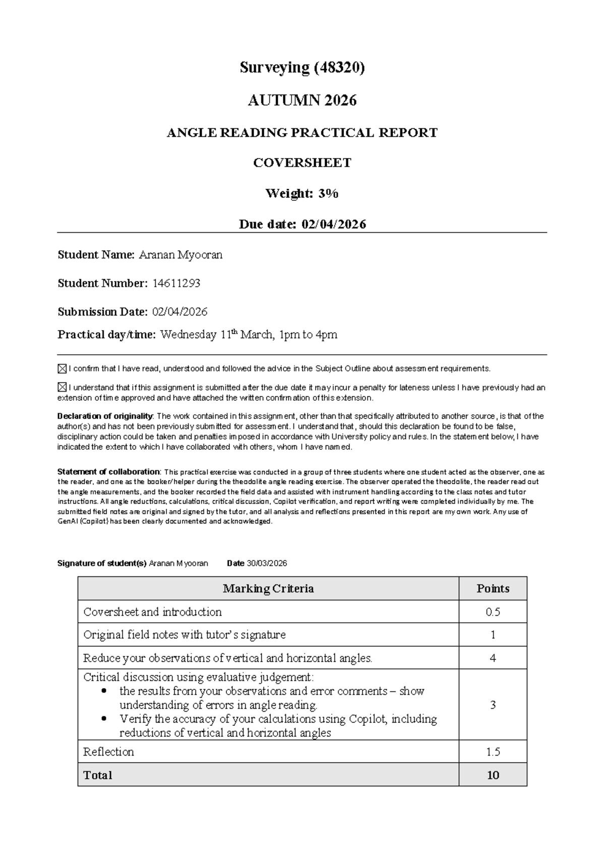 Surveying (48320) Autumn 2026 Practical Report: Angle Reading Exercise ...