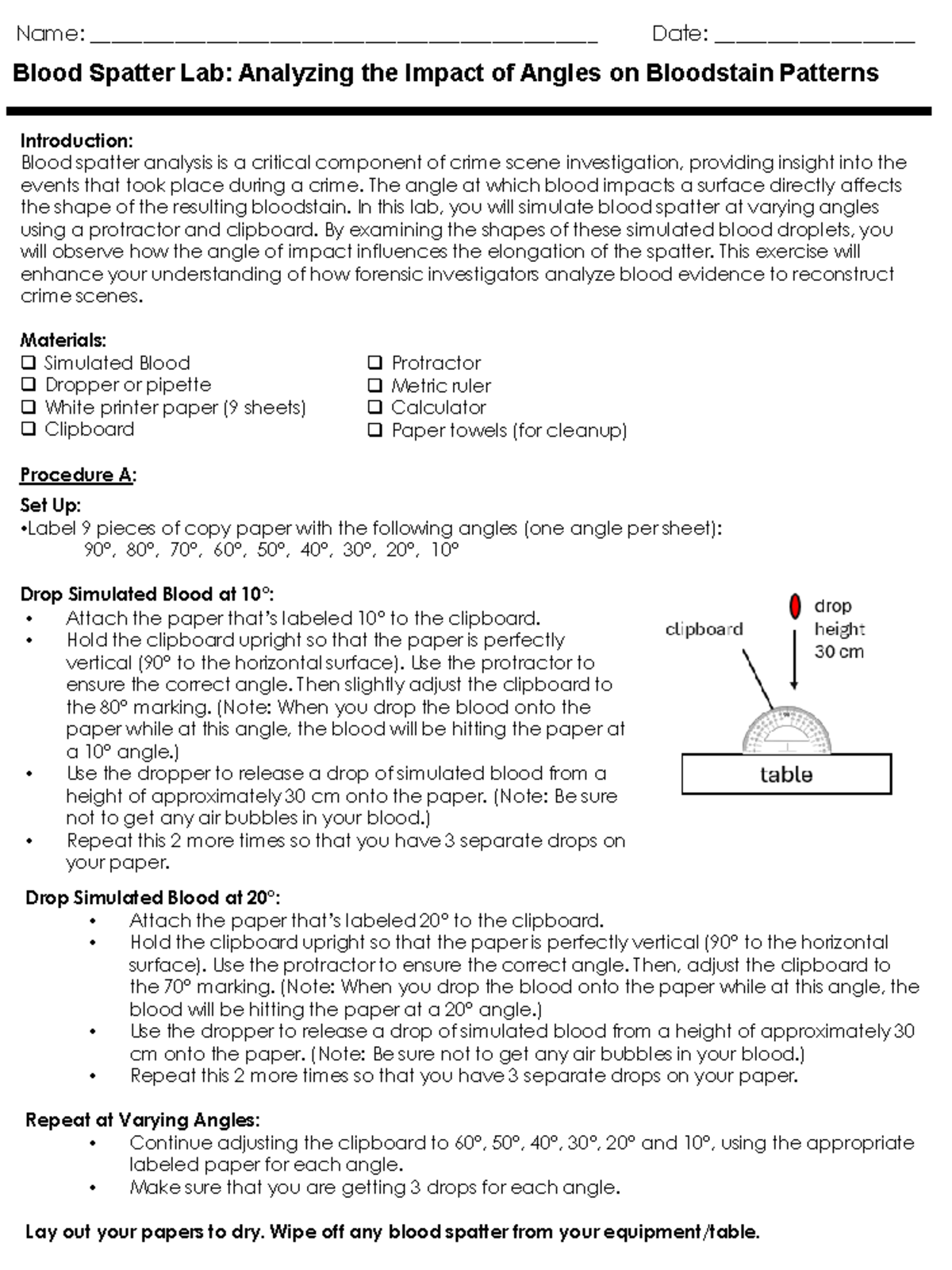 Angle of Impact Lab: Analyzing Bloodstain Patterns in Forensics - Studocu