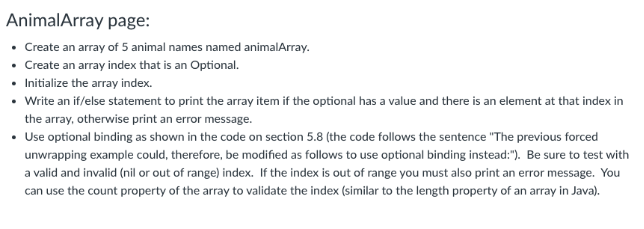 Solved AnimalArray page: - Create an array of 5 animal names | Chegg.com
