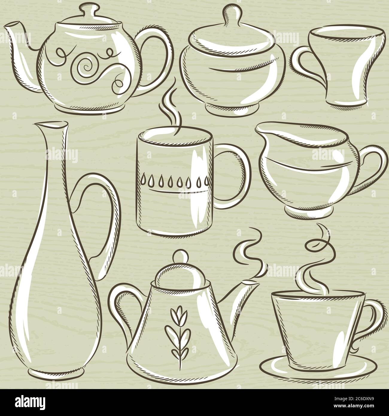 Premium Vector | Set home ceramic tableware hand drawn illustration on ...