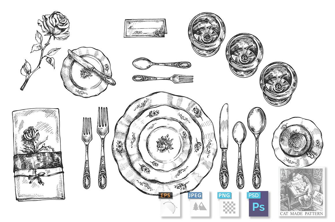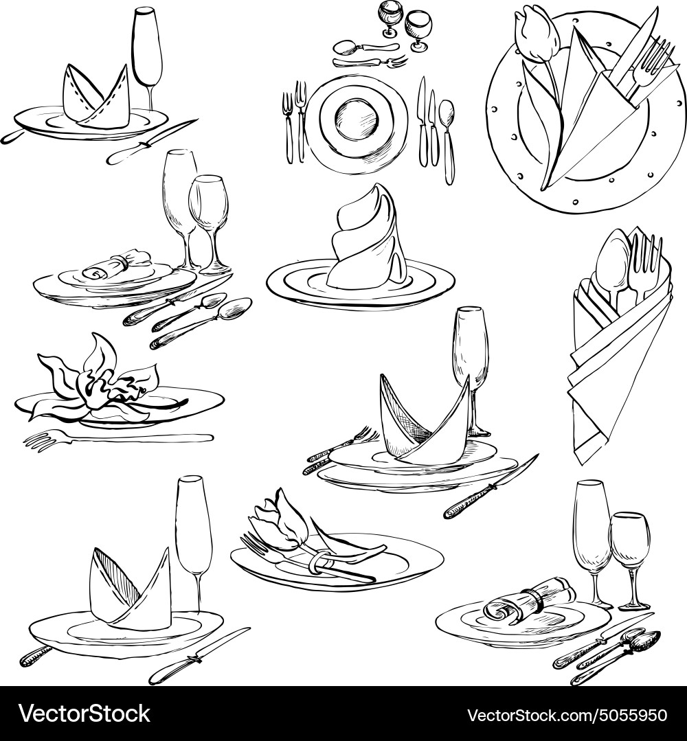 Tableware setting | How to draw hands, Tableware set, Vector illustration