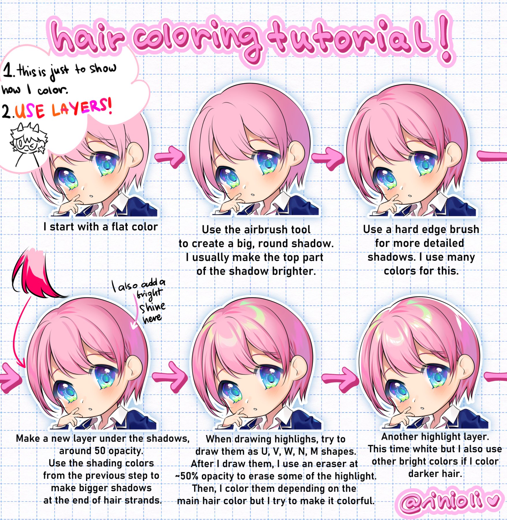 Tutorial how to color anime hair for beginners cellshading – Artofit