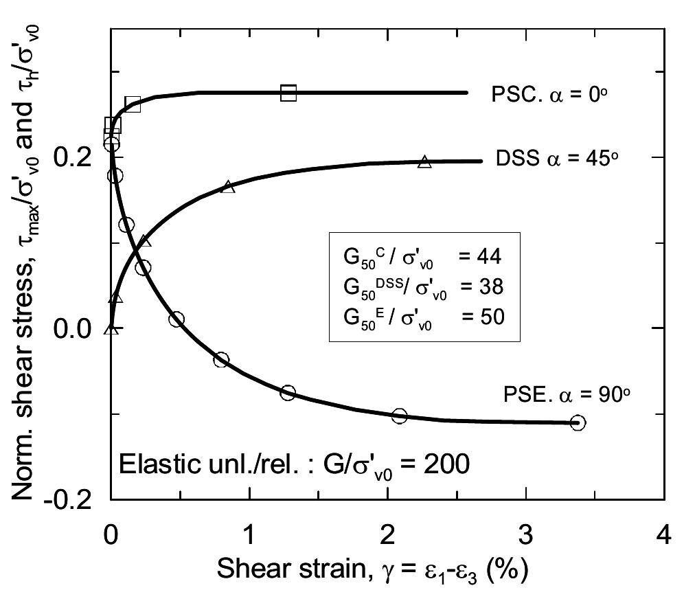 Anisoft stress — strain relationship for the base case clay