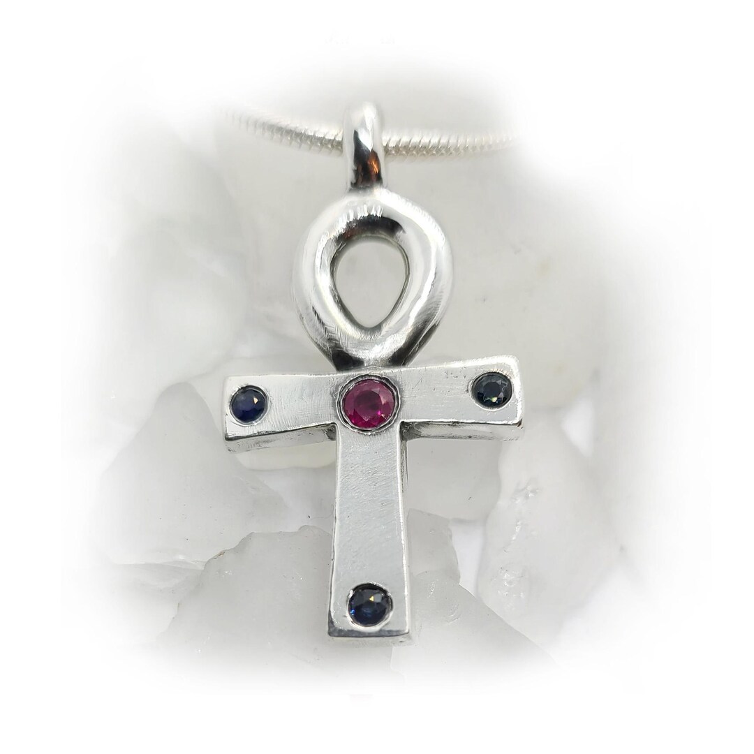 Ankh Egyptian Cross With Ruby and Sapphires Stone Silver Necklace - Etsy