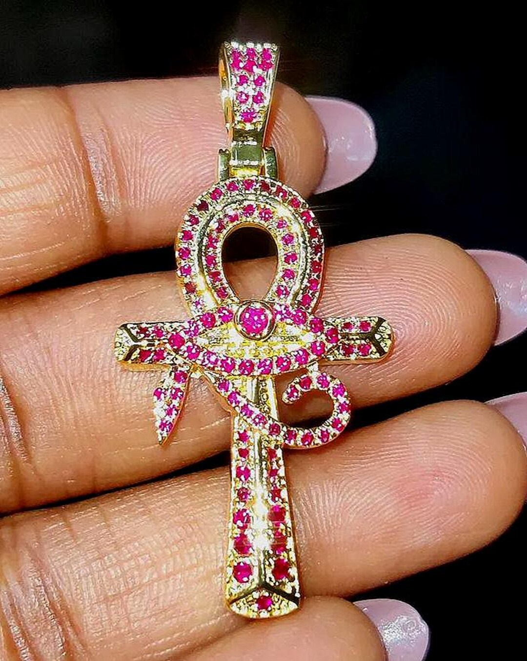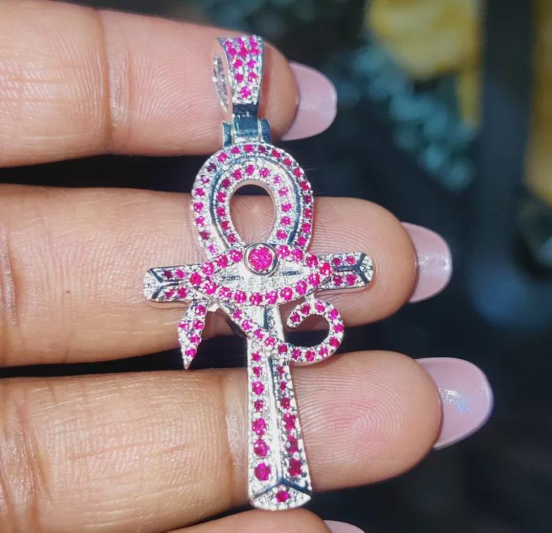 White Gold Iced Out Ruby Ankh Cross Pendant - YouTube