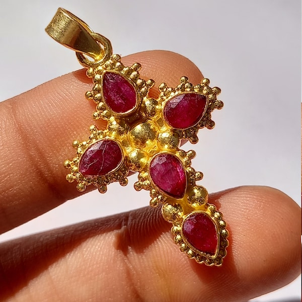 0.55ct Natural Ruby Cross Solid Gold Necklace For Sale at 1stDibs