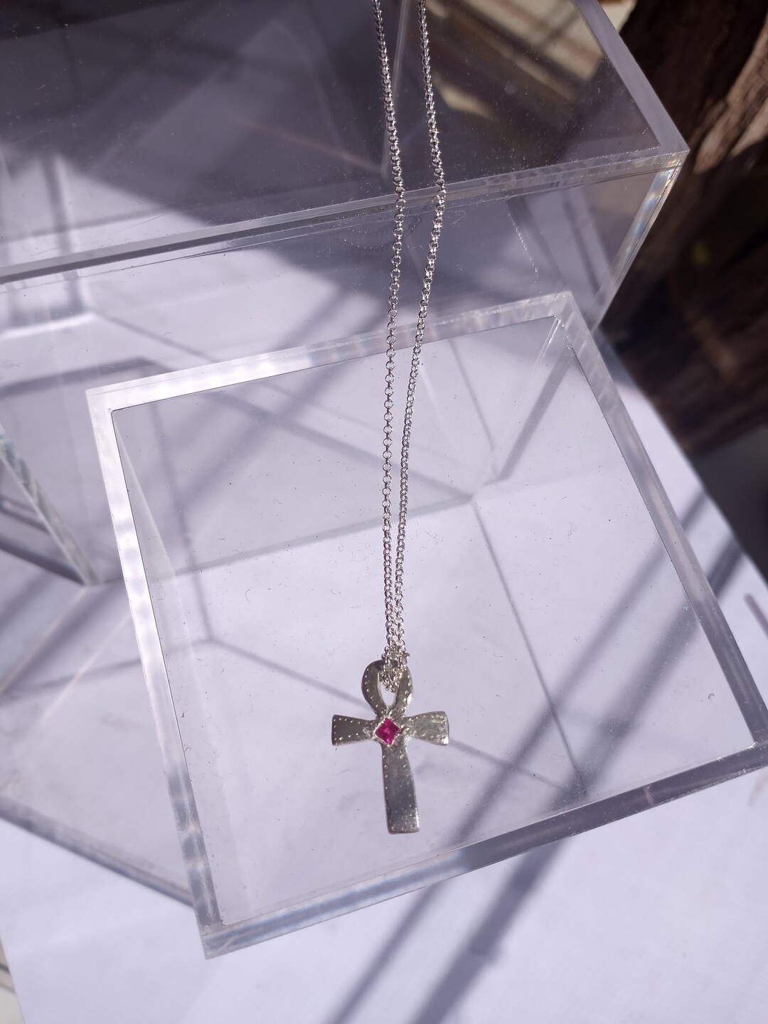 Ruby Ankh Pendant Princess Cut Fine Silver - Etsy