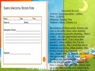 Second example of an anecdotal record. Anecdotal Records, Anecdotal ...