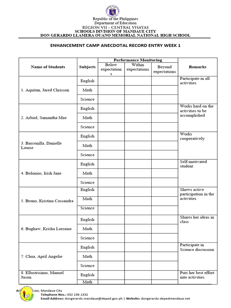 Anecdotal Record Template - prntbl.concejomunicipaldechinu.gov.co