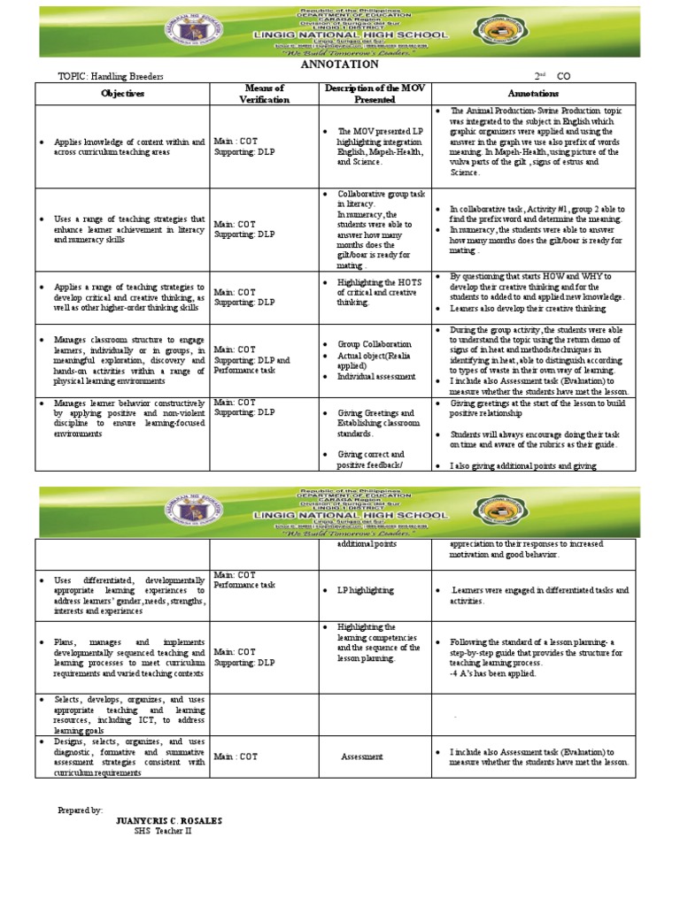 NCOI Annotation Template for Master Teacher | PDF | Educational ...