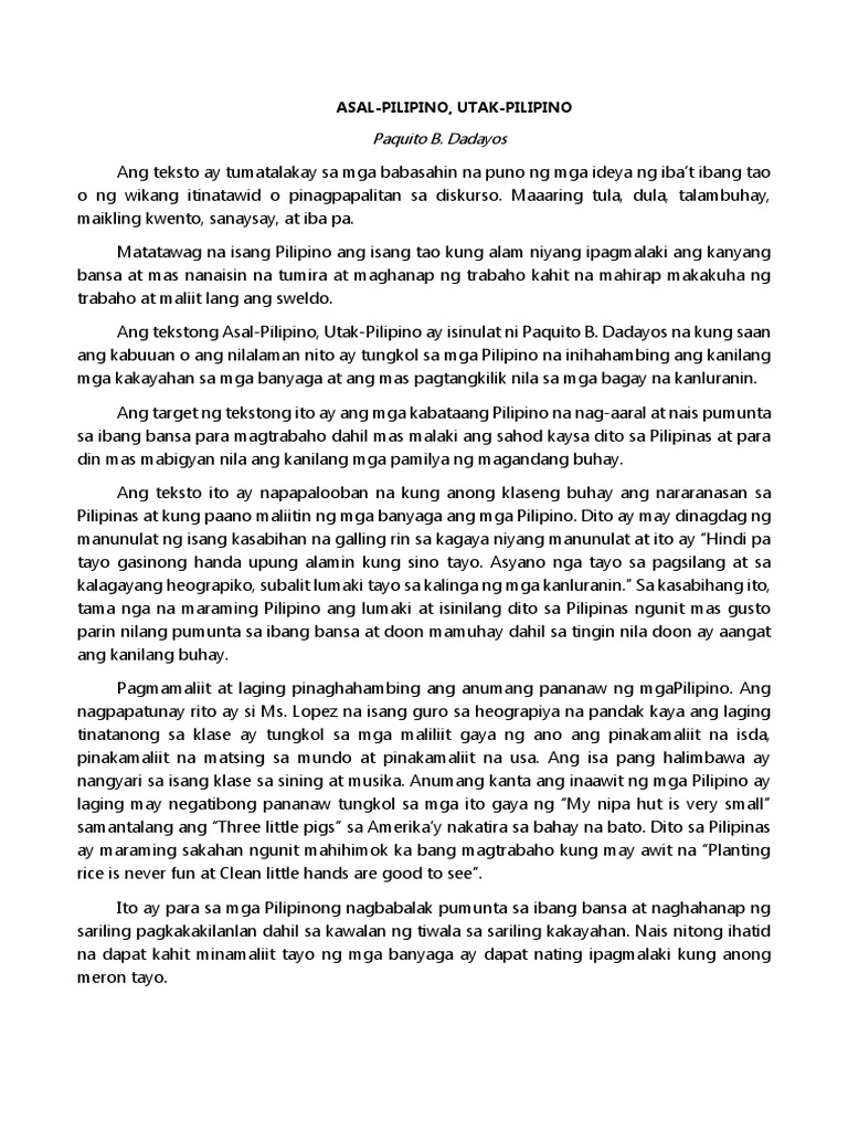 Pagsusuri NG Sanaysay | PDF
