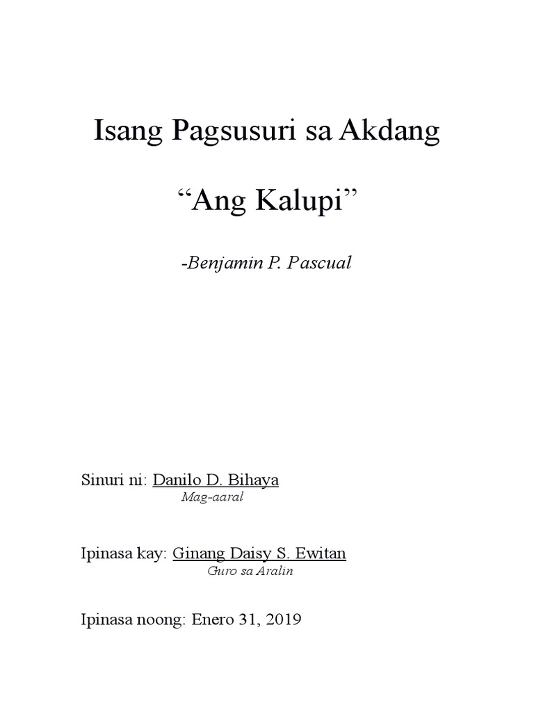 Pagsusuri ng Tula (Format and Sample) - Pamagat Ang tulang ito ay ...
