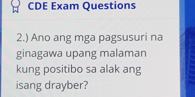 Solved: CDE Exam Questions 2.) Ano ang mga pagsusuri na ginagawa upang ...