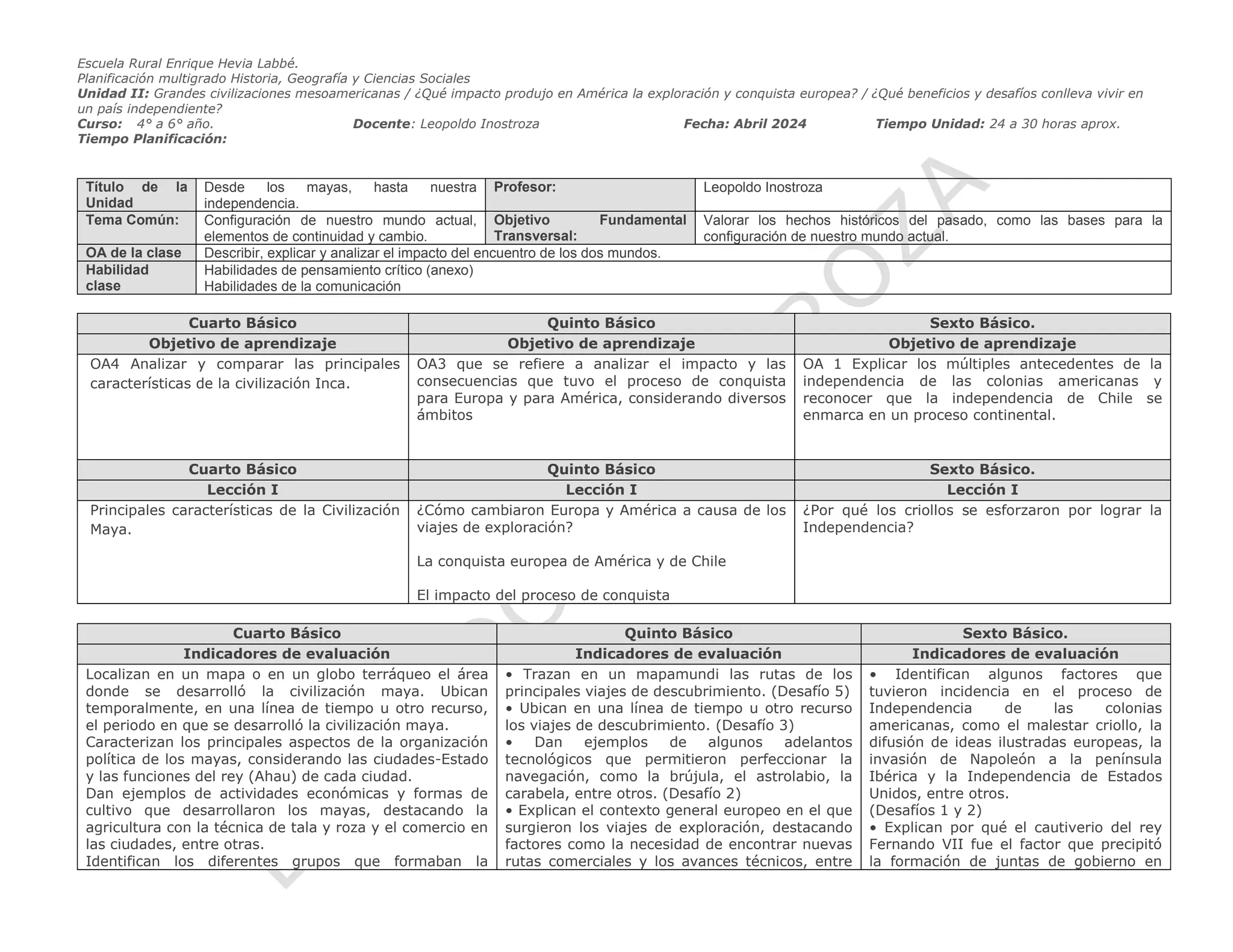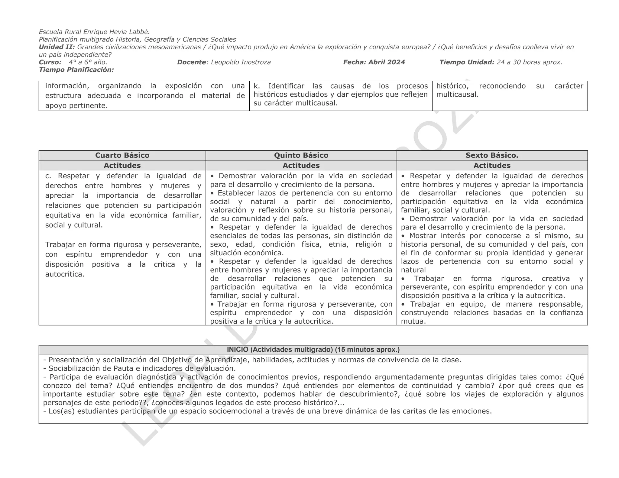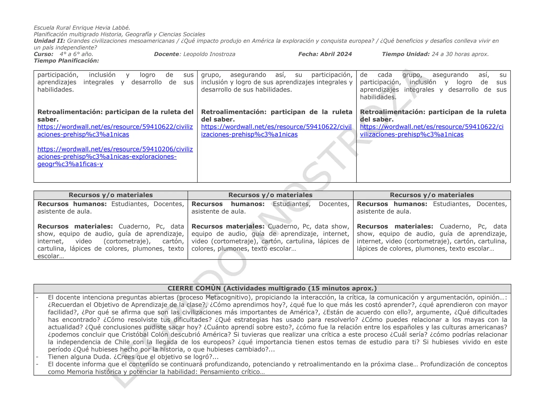 Planificación multigrado historia Historia 4° a 6° clase 05 de abril ...