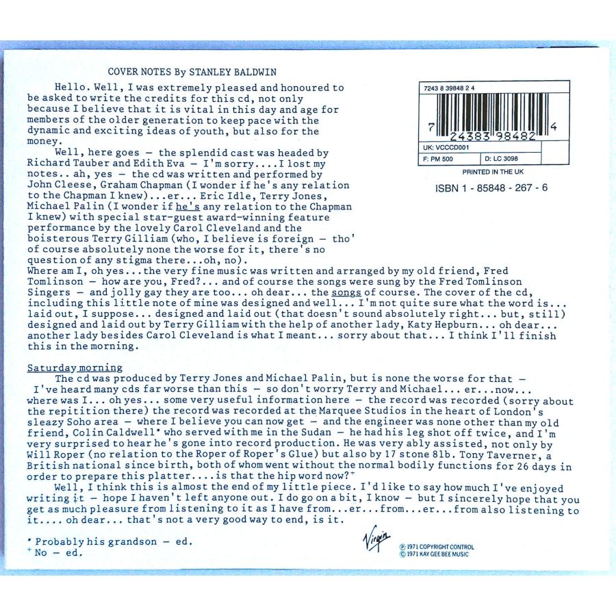 Monty Python Used CD, year 1971