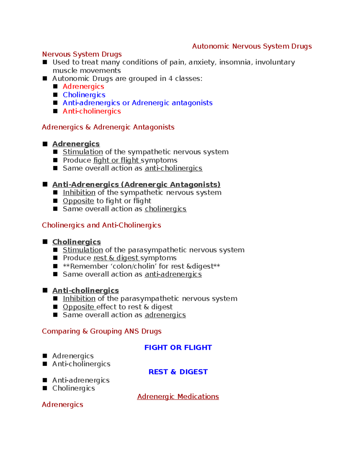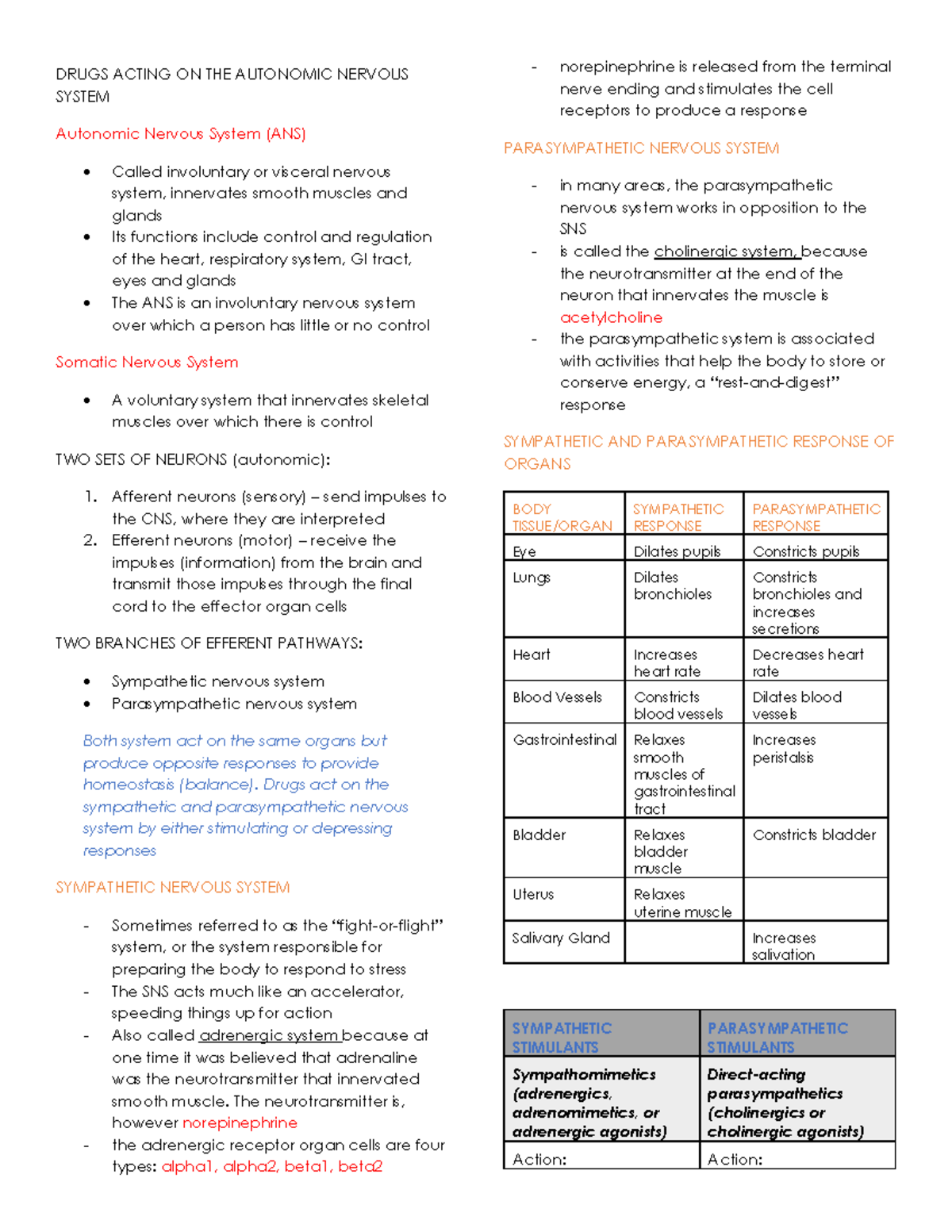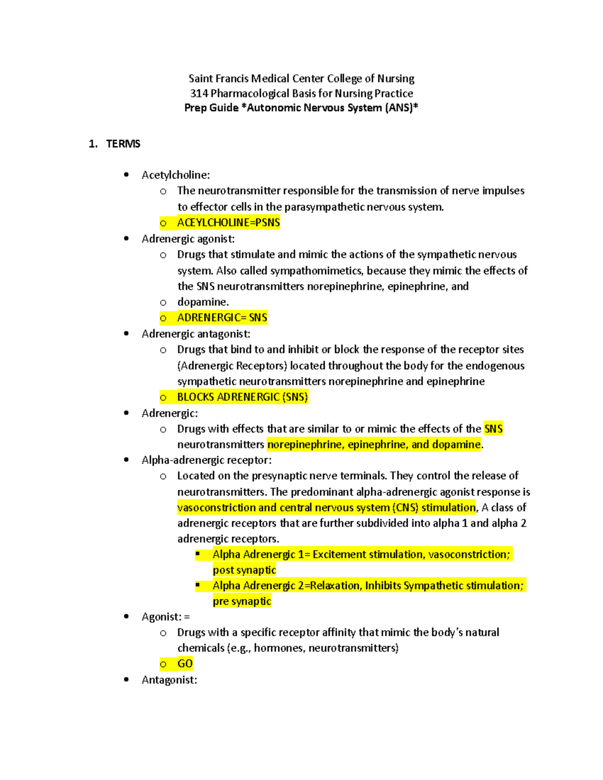 314Prep Guide ANS - Autonomic Nervous System Drugs - Saint Francis ...