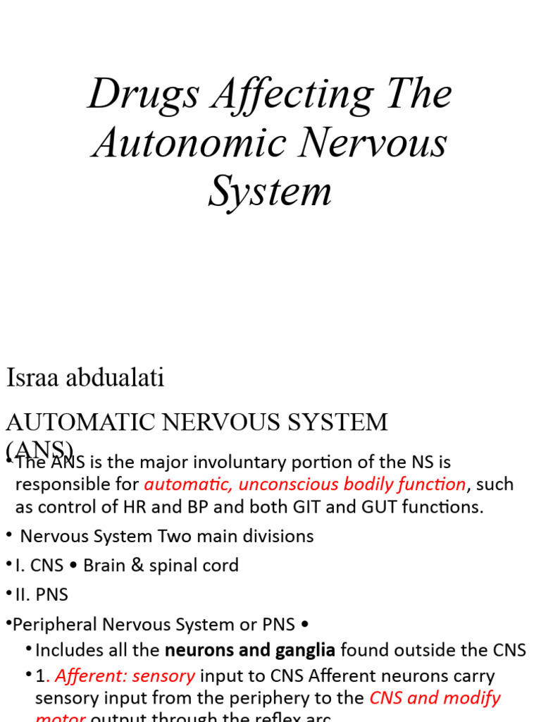 Drugs Affecting The Autonomic Nervous System: Israa Abdualati | PDF ...