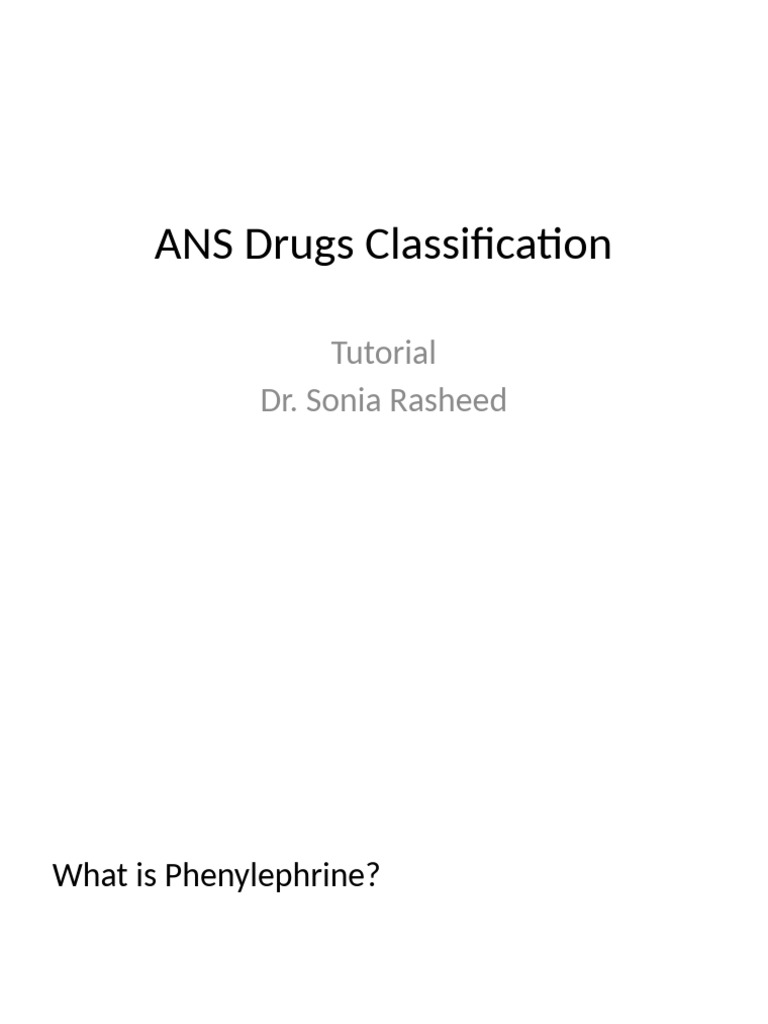 ANS Drugs Classification: Tutorial Dr. Sonia Rasheed | PDF ...