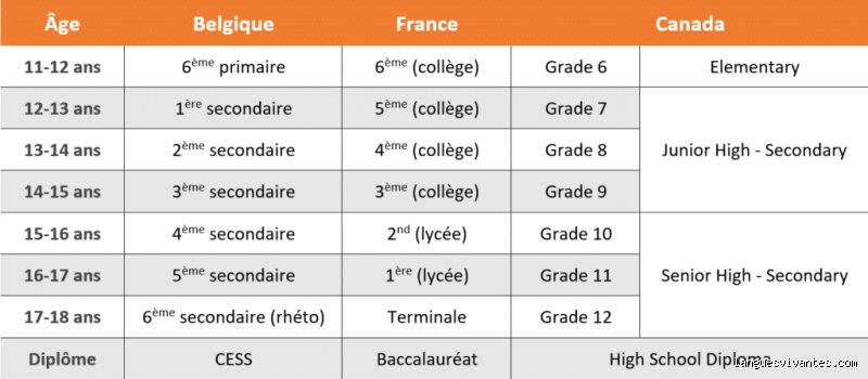 Quand on a 15 ans on est en quelle classe au Canada