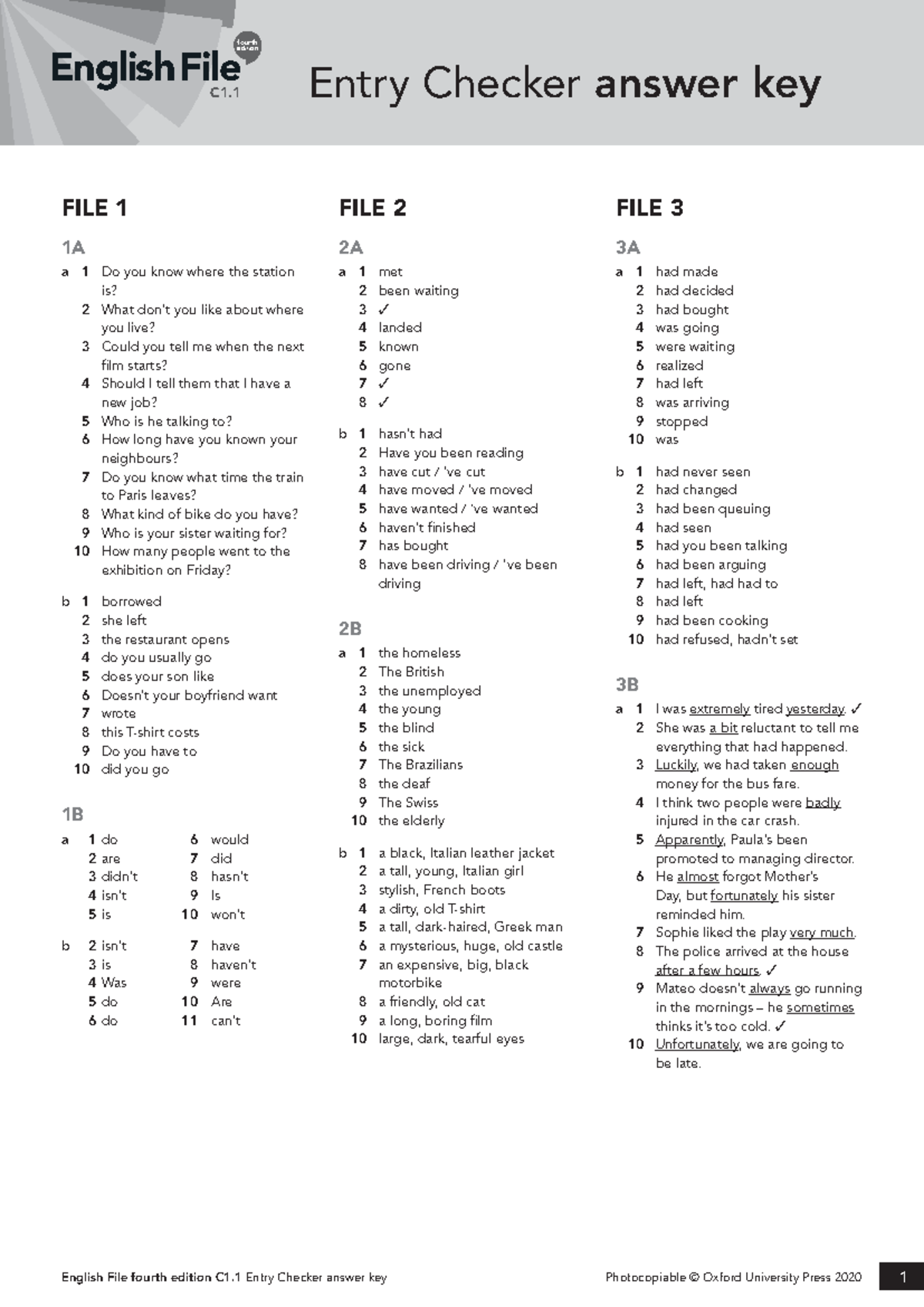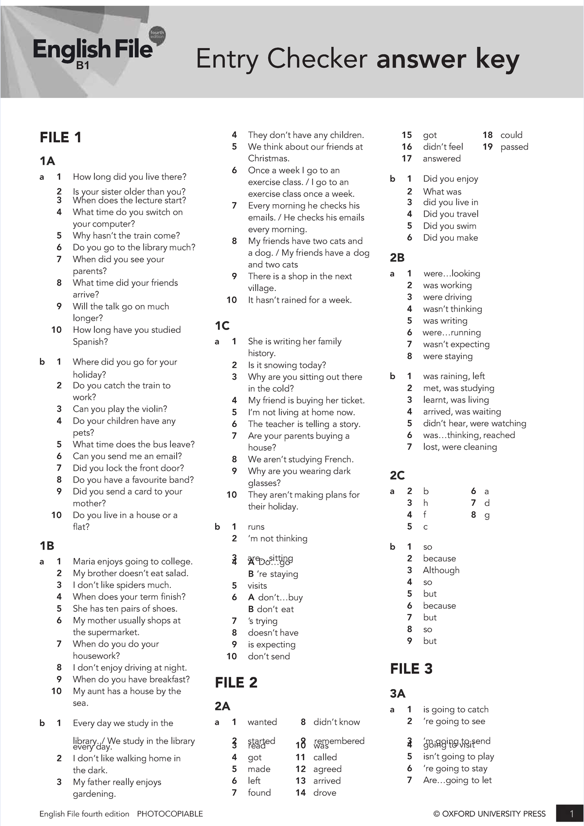 English file A1/B2 Entry checker answer key - English File Entry ...