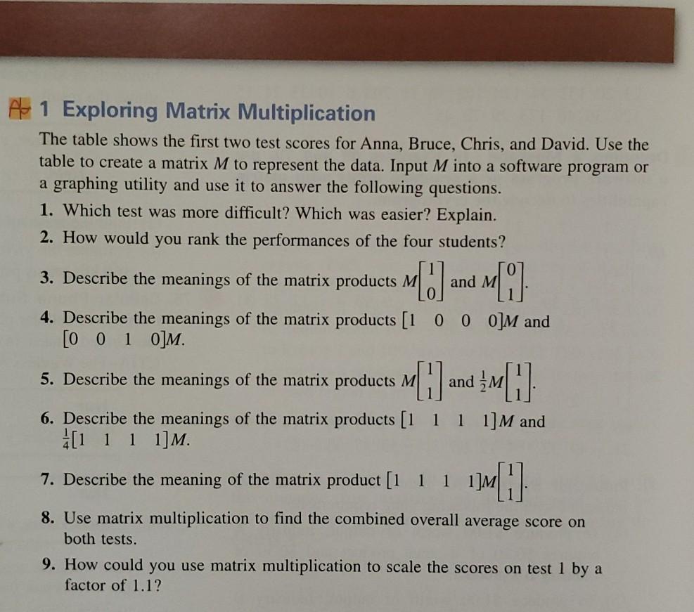 Solved 1 Exploring Matrix Multiplication The table shows the | Chegg.com