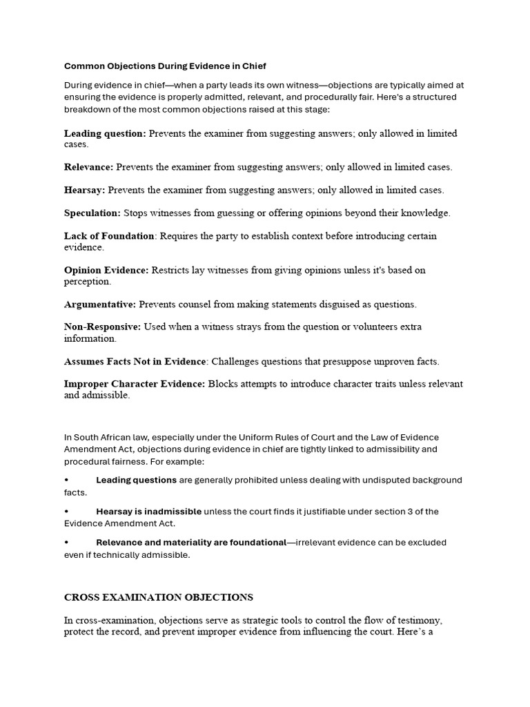 Legal Objections Guide: Understanding Common Objections in Court - Studocu