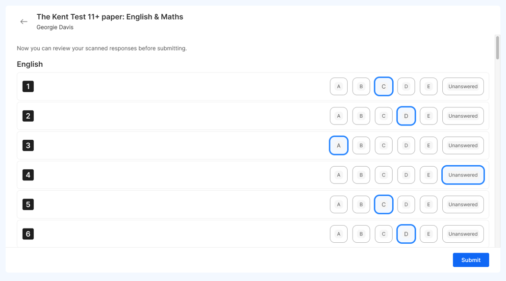 How do I submit my child's paper test answers?