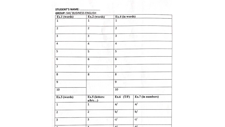 BUSINESS ENGLISH SM: Scan & Answer Sheet for Exercises - Studocu
