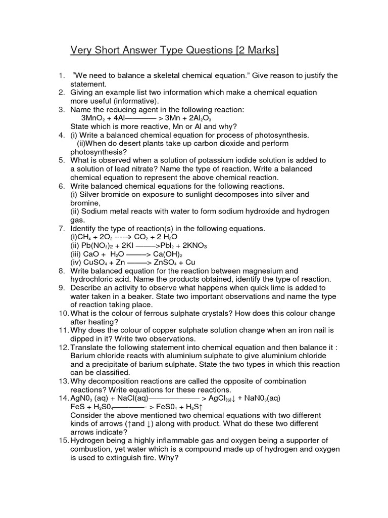 Short Answer Type Questions | PDF | Chemical Reactions | Redox