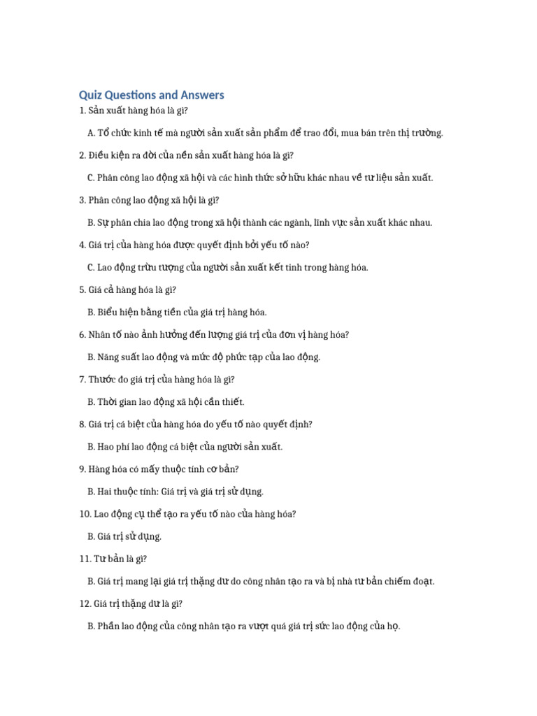 Quiz Questions and Answers | PDF