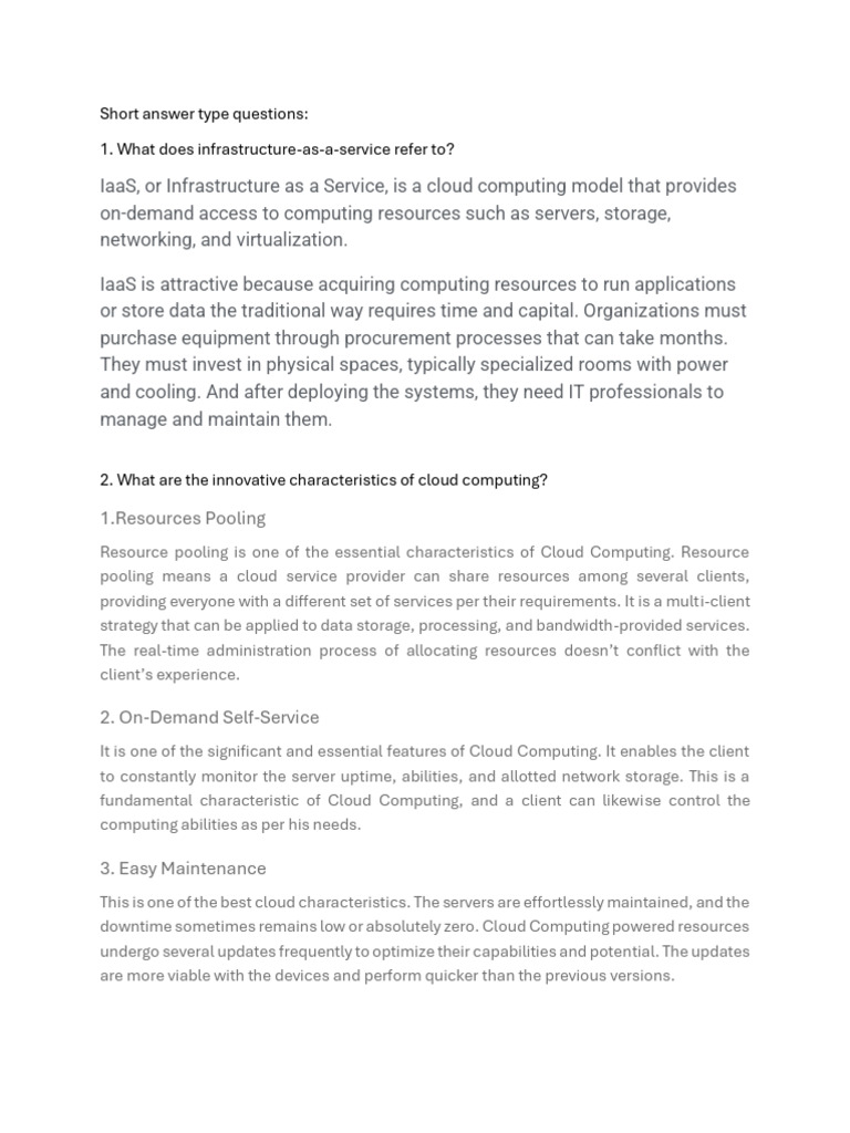 Short Answer Type Questions | PDF | Cloud Computing | Software As A Service