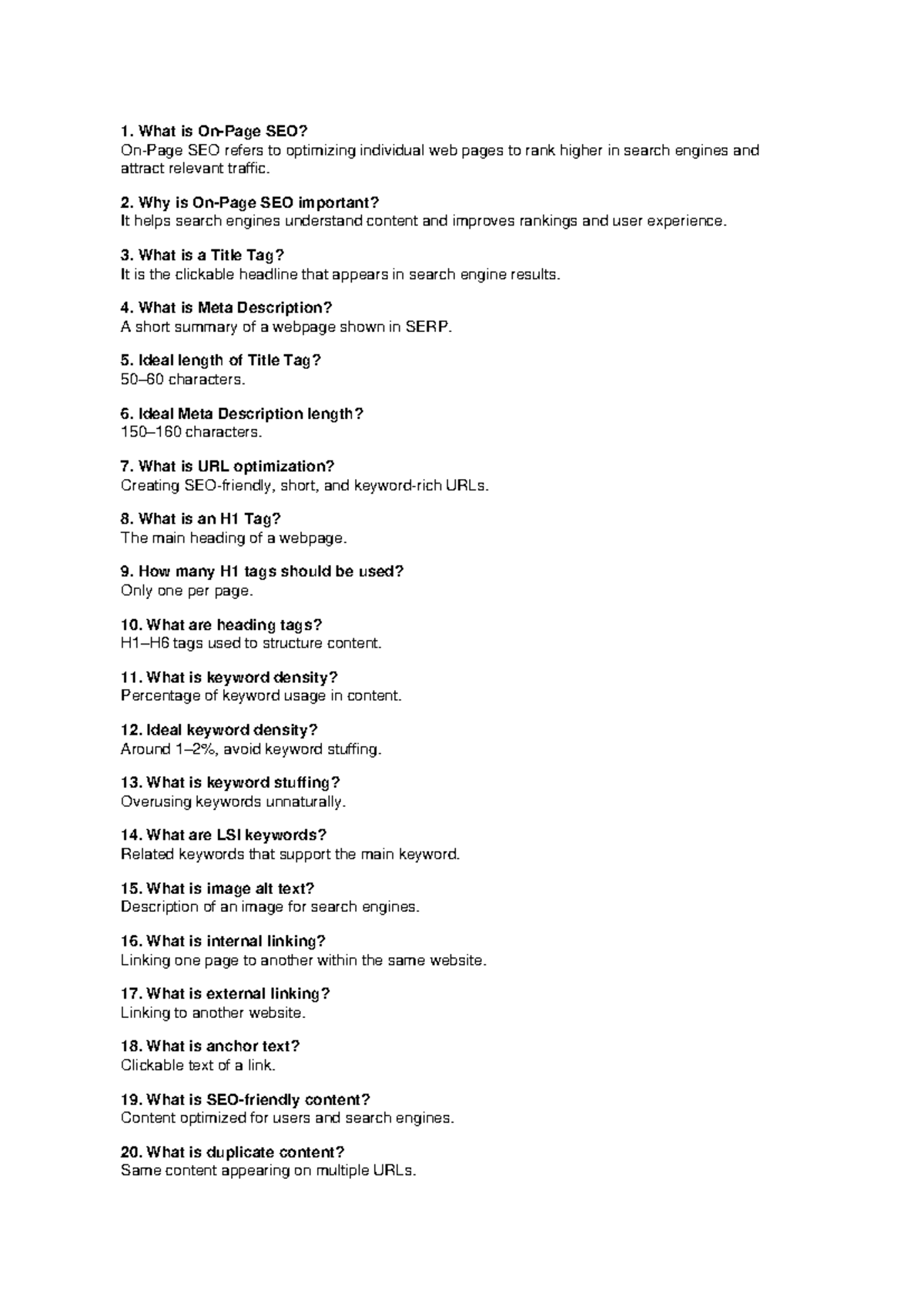 On Page SEO 100 Questions: Comprehensive Guide for Mastery - Studocu