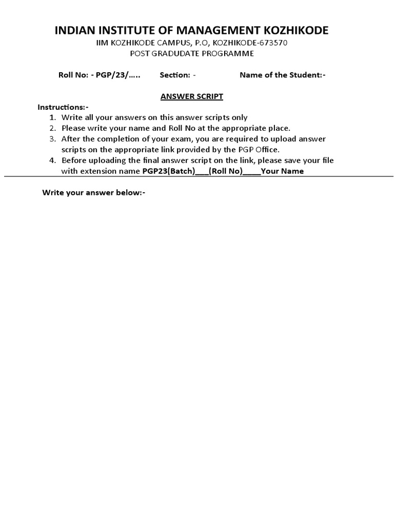 Answer Script Template | PDF