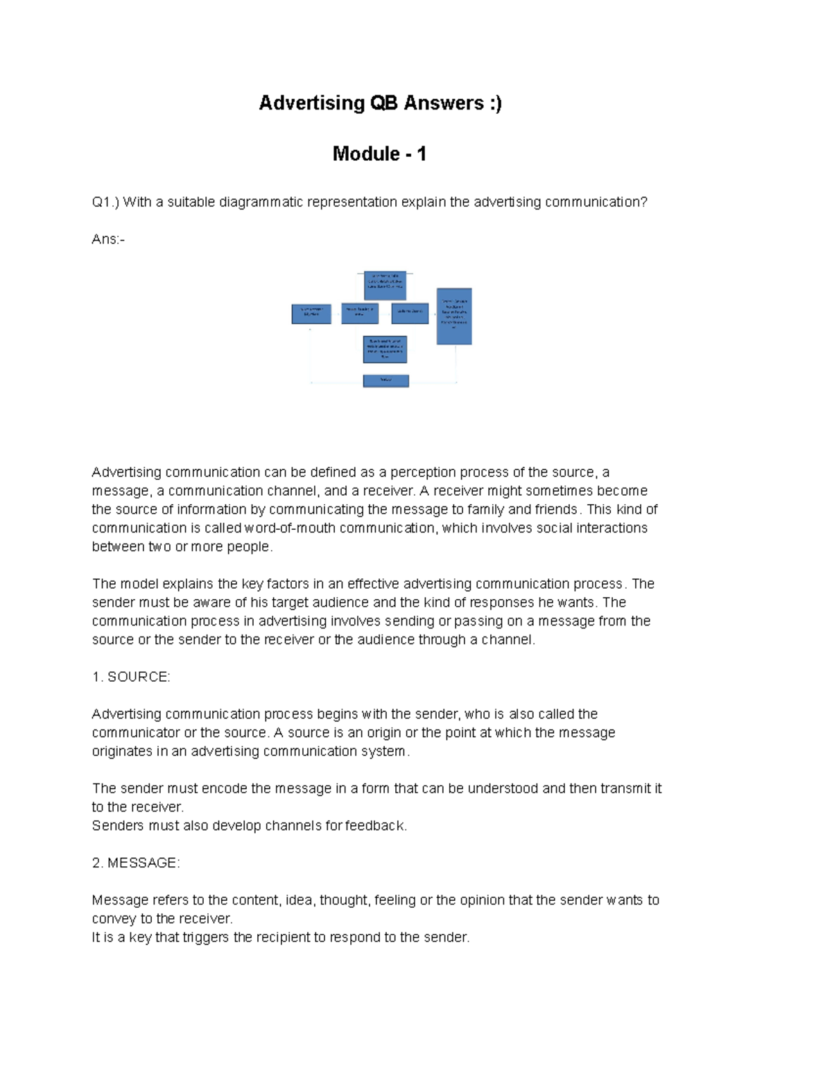 Advertising Answers (Module 1) - Advertising QB Answers :) Module - 1 ...