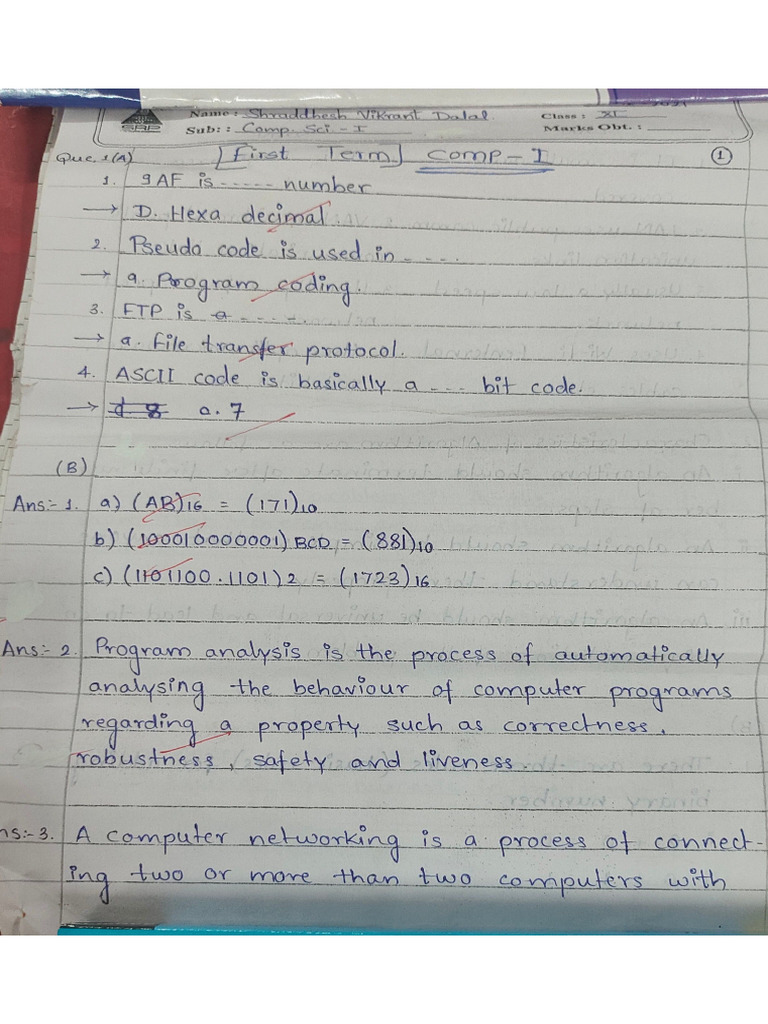 Answer Sheet | PDF | Teaching Methods & Materials | Computers