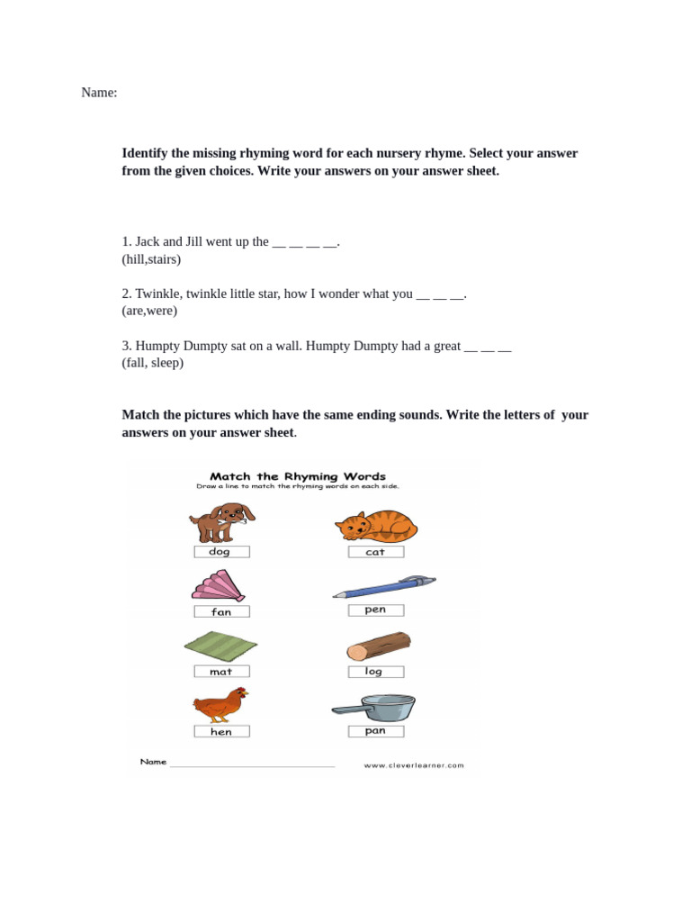 Matching Answers (A) | Fun and Engaging 1st Grade PDF Worksheets ...