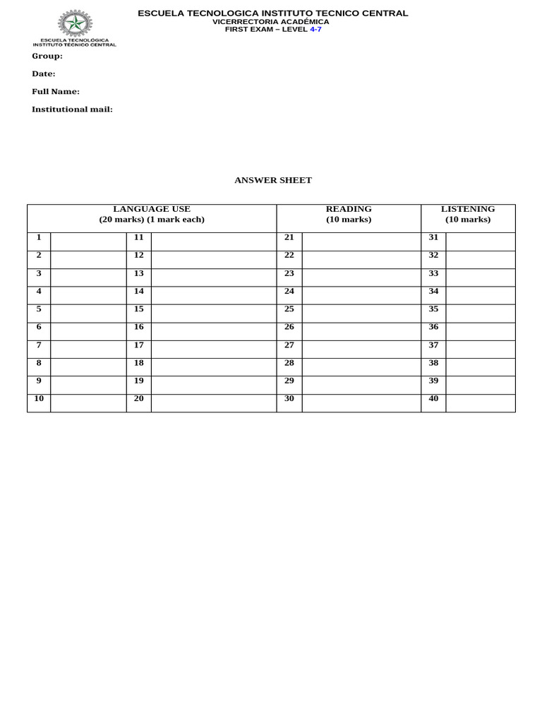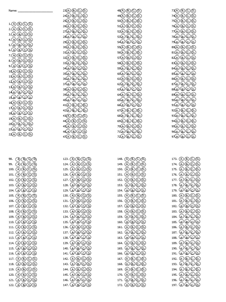 Answer Sheet | Answer Sheet Printable | Answer Sheet PDF | Answer Sheet ...